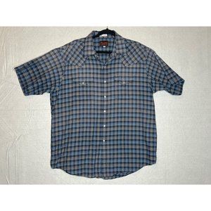 Plains Western Wear Mens XL Blue Plaid Pearl Snap Wrinkle Resistant Short Sleeve