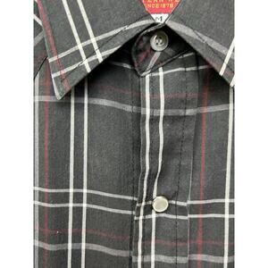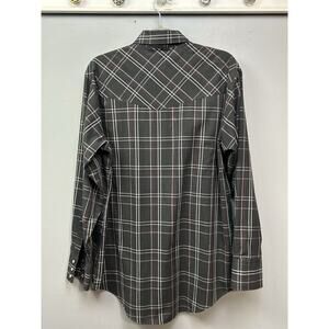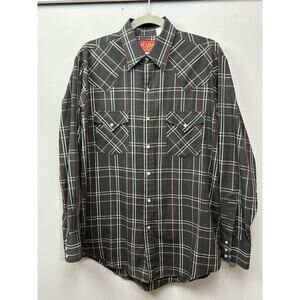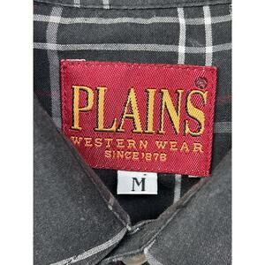 Plains Western Wear Pearl Snap Shirt Mens Medium Black Gray Plaid Rockabilly