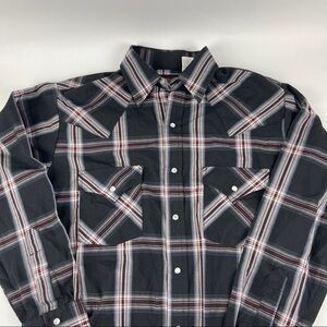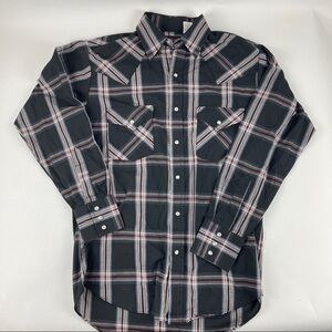 Plains Western Wear Pearl Snap Shirt Mens Small Gray Black Plaid