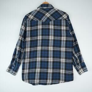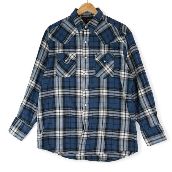 Plains Western Wear Shirt Mens Large Blue Plaid Pearl Snap Long Sleeve Cowboy