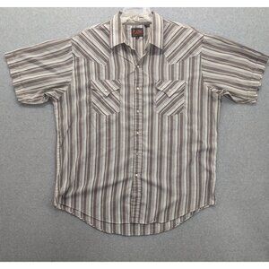 Plains Western Wear Shirt Mens XL Brown Stripe Pearl Snap Cowboy Rodeo Retro