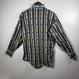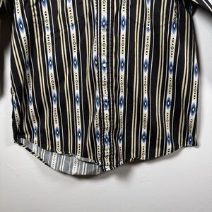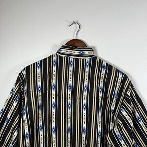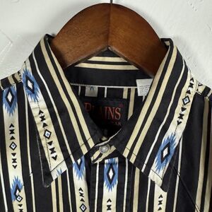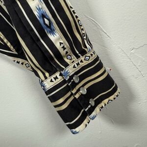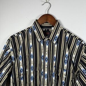 Plains Western Wear Southwest Aztec Pearl Snap Shirt Medium Black Blue VTG