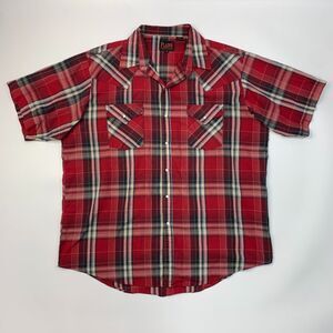 Plains Westernwear Shirt Mens XL Extra Large Red Snap Button Plaid Lightweight