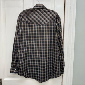 Plains western wear pearl snap button down long sleeve shirt men's large