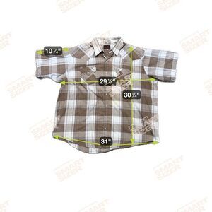 Plains Western Wear Big Man Plaid Button-Up Shirt 3X Brown & White Short Sleeve