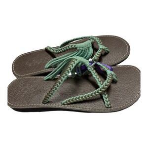 Plaka Palm Ocean Side Brown Teal Woven Sandals Women's Size 7 Flats