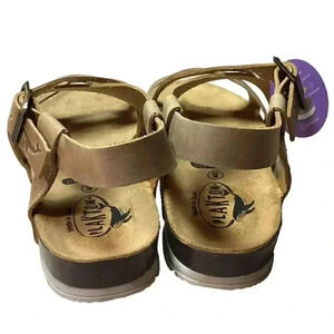 Plakton Sanals Women 9 40 Brown Gemma Ankle Strap Leather Cork Flat NEW