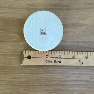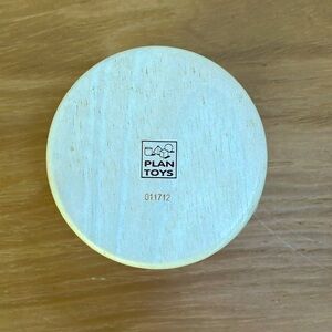 PlanToys wooden roller rattle. Recommended age 0-6 months. Made from sustainable rubber wood and coated with a non-toxic finish, all colors are made from vegetable dye. Gently used. Weight 0.1 lb