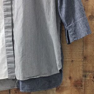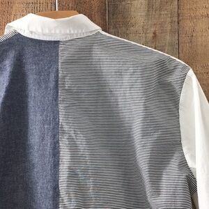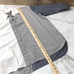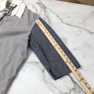 Planet Blue White Stripe Button Front Shirt Womens 1 4-8 Long Sleeve Colorblock