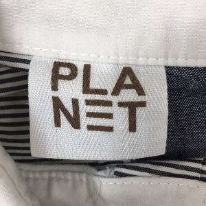 Planet Blue White Stripe Button Front Shirt Womens 1 Long Sleeve Cotton. Hidden button closure. 100% Cotton. Pre-owned. The Last button is missing.