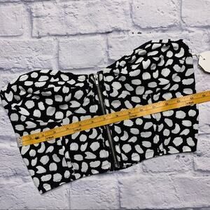 Planet Blue Zip Front, Cheetah Crop Top. New with Sample Tag. Elastic Back. Samples are typically XS/S (please see measurement photo).