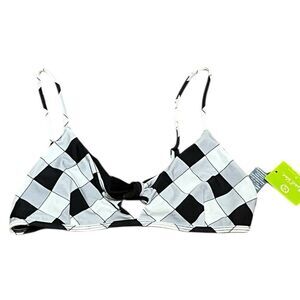 Planet Blue “Storm” Black And White Checkered Reversible Bikini Top, Size M, NWT