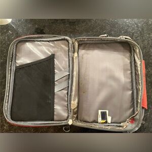 Planet Box Rover lunch box. All stainless steel. Bento style. Used but has lots of life left. Comes with 3 magnet sets: emoji, cat, trains. Easy to clean and maintain. Carrying case has stains and some wear/ tear. See pics. BUT totally works and fits box. Some of the marks can be scrubbed out by hand I think and then air dry. Super environmentally friendly. Cute and fun for kids!