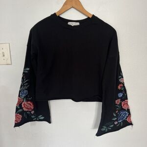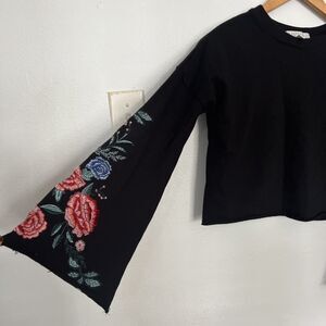 Planet Gold Black Bohemian Y2K Cropped Bell Sleeve 2000 Sweater XS