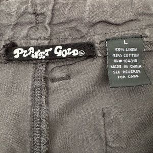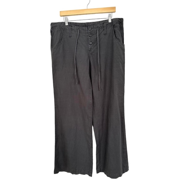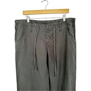 Chic wide-leg design. Features button and drawstring closure. Ideal for everyday style.