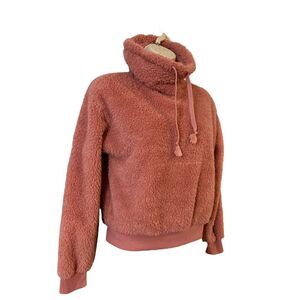 Planet Gold Juniors' Fleece Cowlneck Sweatshirt Pink Size XS. See photos for measurements.