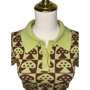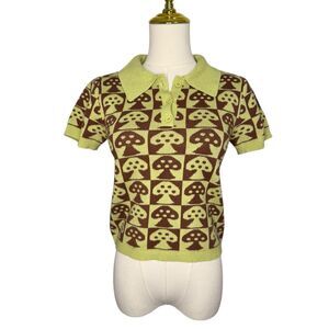 Women’s size medium Planet Gold mushroom print knit sweater top