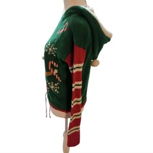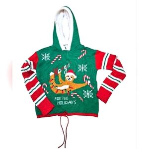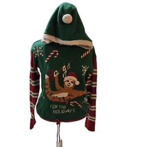 Planet Gold XS Holiday Sloth Hooded Sweater Faux Fur Santa Candy Canes Pre-owned