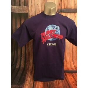 Planet Hollywood Chicago Travel Souvenir T-Shirt Large Blue Stars Earth World L