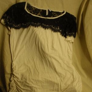 Planet Motherhood - Medium - Short Sleeve Lace Yoke Tee - Ivory Black
