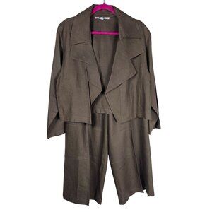 Planet by Lauren G Brown Linen Pants Set Sz 2/US 10-14 Coastal Lagenlook Neutral
