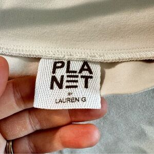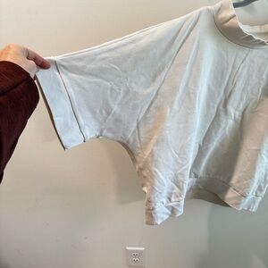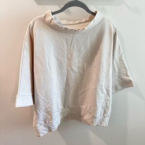 Planet by Lauren G Cream Stretch Knit Boxy 1/2 Sleeve Mock Neck Top Size 2