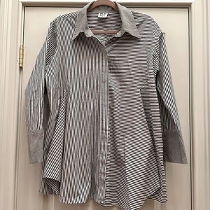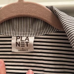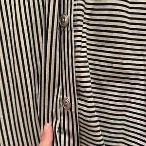 Planet by Lauren G Mixed Stripe Button Down Tunic Shirt with Pockets Sz2 Large