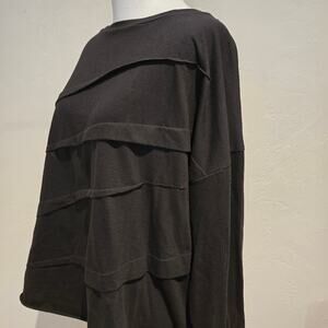 Planet by Lauren G Pima Cotton Luxury Tucked Boxy T-Shirt in Black, One Size