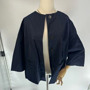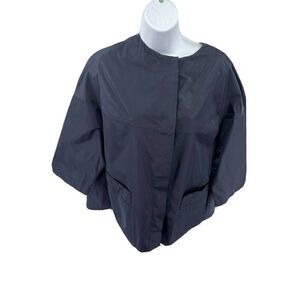 Planet by Lauren G Navy Blue Jacket 100% Nylon Boxy Button Pocket