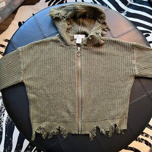 Planet gold Juniors zip front hoodie sweater olive green size XS