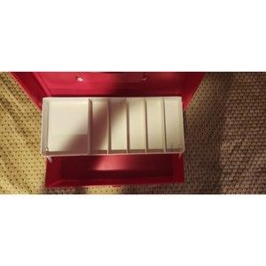 Plano 2000 Series Red Fishing Box 2 Tier Tackle Boite A Peche 1980s Vintage. Label still affixed. It was used to store craft supplies, not tackle in its previous life.