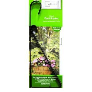 The Mainstays 12 inch Black Iron Plant Bracket makes it easy for you to add new elements to the backyard. It's ideal for hanging plants, wind chimes, bird feeders, lanterns and more. This hanging plant bracket has a hook at the end to keep loops from sliding off. The triangular reinforcement increases the strength of this product so that it can hold heavier items. It's easy to install, simply screw the unit into a solid wall or post. The black color makes this brace easy to coordinate with your exterior decor scheme. Sturdy, iron construction Extends out 12" Right triangle design fortifies the hanging plant bracket. Easy to install. Imported. Model #S10-066-013-02