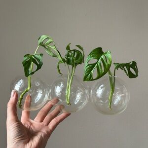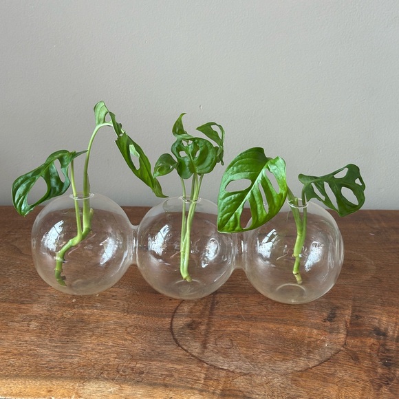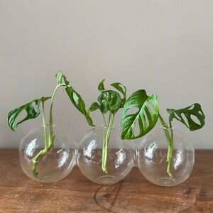 Glass Bubble Vase Plant Propagation Station Decor, 3 round spheres attached making one vase with 3 hole openings.