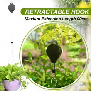 Retractable Pully Plant Hanger: There is a durable hanging strap inside, the maximum extension length could be up to 35inchs (90cm). You can raise or lower the plant very quickly and lock any position you want with this pull-down hanger. It makes watering and feeding much more easy and convenient, no need to climb ladders anymore.Easy to Use: Pull down the rope vertically to the ground at the desired height, if it has not blocked, do not immediately let go, and then pull about 1-3cm with the slowest speed to block it.