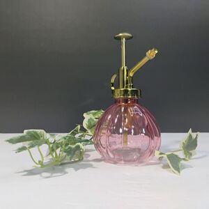 Plant Watering Pot Spray Bottle Pink & Gold Flower Mister Glass Decor