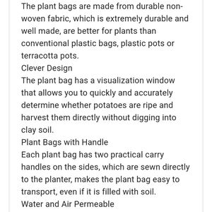 New, reusable, deep planter bag. Moveable. Resistant to mold and mildew. Great for root vegetables.