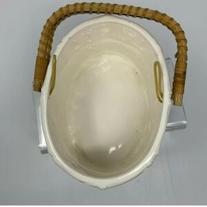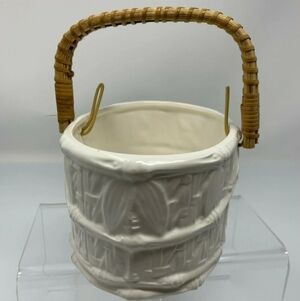 Planter Ceramic Basket Bamboo Design Wicker Handle Vintage Japan White Catchall