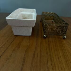 Planter Inc USA 1994 Rectangle Brass Stand 9 x 4 x 3.5 Speckled Pottery Vintage
