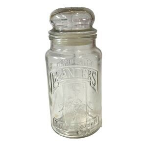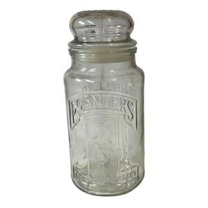 Planters Nuts Clear Glass Canister 8” Tall 75th Anniversary 1981 With Lid Peanut