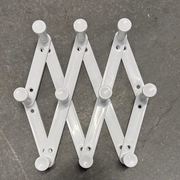 Organize your space with this sleek white expandable accordion rack. Perfect for any room, it offers a stylish and functional solution for hanging items.
