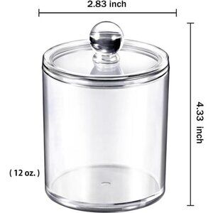 🧿✅CUTE AND FUNCTIONAL - The clear acrylic apothecary jars combine BEAUTY with organization,going perfect for the modern farmhouse look you’re looking for in the bathroom. A rounded base provides plenty of room for storing bathroom essentials such as cotton swabs, qtips, cotton balls, cotton rounds, floss picks and is easily wiped clean with soap and water.Package includes:4 Pack of 12 ounce canisters