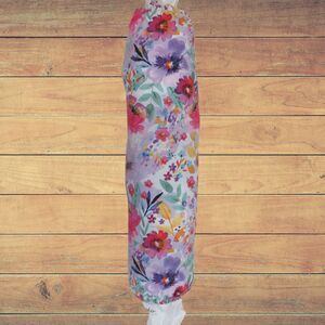 Plastic Bag Holder, SMALL Purple Floral Shopping Bag Dispense. Plastic bag holder made of 100% cotton fabric. It measure approximately 17 inches long and 6-1/2 inches wide and an additional 5 inches with the handle. There is elastic at both ends. It makes being organized so much easier and fun. A plastic bag dispenser makes a wonderful housewarming gift or a gift to yourself. A plastic bag holder can help organize your kitchen and store many plastic bags. Use them in any room, the garage, your greenhouse, or take them camping. CARE: Machine wash and dry.
