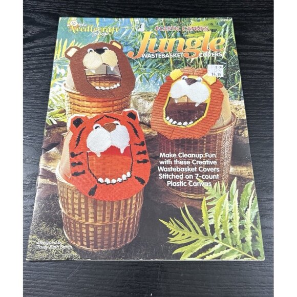 Plastic Canvas Pattern Booklet-JUNGLE Wastebasket Covers-NeedleCraft Shop 93361