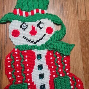 Plastic Canvas Snowman Welcome Sign Holiday Christmas