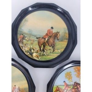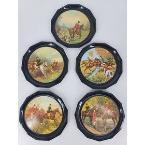 5 Vintage Coasters Hunt Scenes Everest Plastic Milano Italy 1960s-1970s Great
