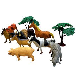 Plastic Down on the Farm Animals - Hard Plastic - Lot of 8 + 2 Trees