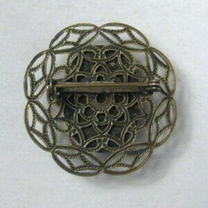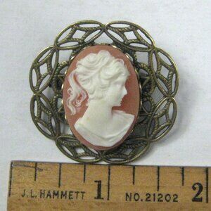 Plastic Faux Cameo Brooch Pin Goldtone Vintage 1980 Jewelry Metal Filigree 1 inc