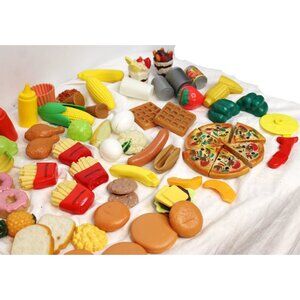 Plastic Play Food Lot Kitchen Fries Pizza Cutter Waffle Hot Dog Hamburger Fruit
