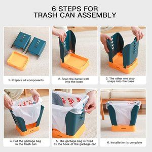 Hook Fixed Garbage Bags- 4 pairs of hooks on both sides of the trash can, which can be used to fix garbage bags of various sizes, not only to ensure that the garbage bags do not fall off, but also to make full use of the plastic bags get from shopping. That is very environmentally friendly.( Only 1 Can Green & Orange)