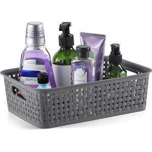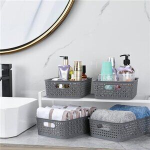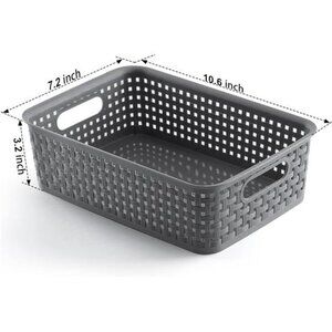 🧿PRODUCT CONFIGURATION: 12 woven pattern plastic baskets, gray. Dimensions:10.6” L x 7.2” W x 3.2” H, basket use small holes design helping ventilation, better organization and storage items.